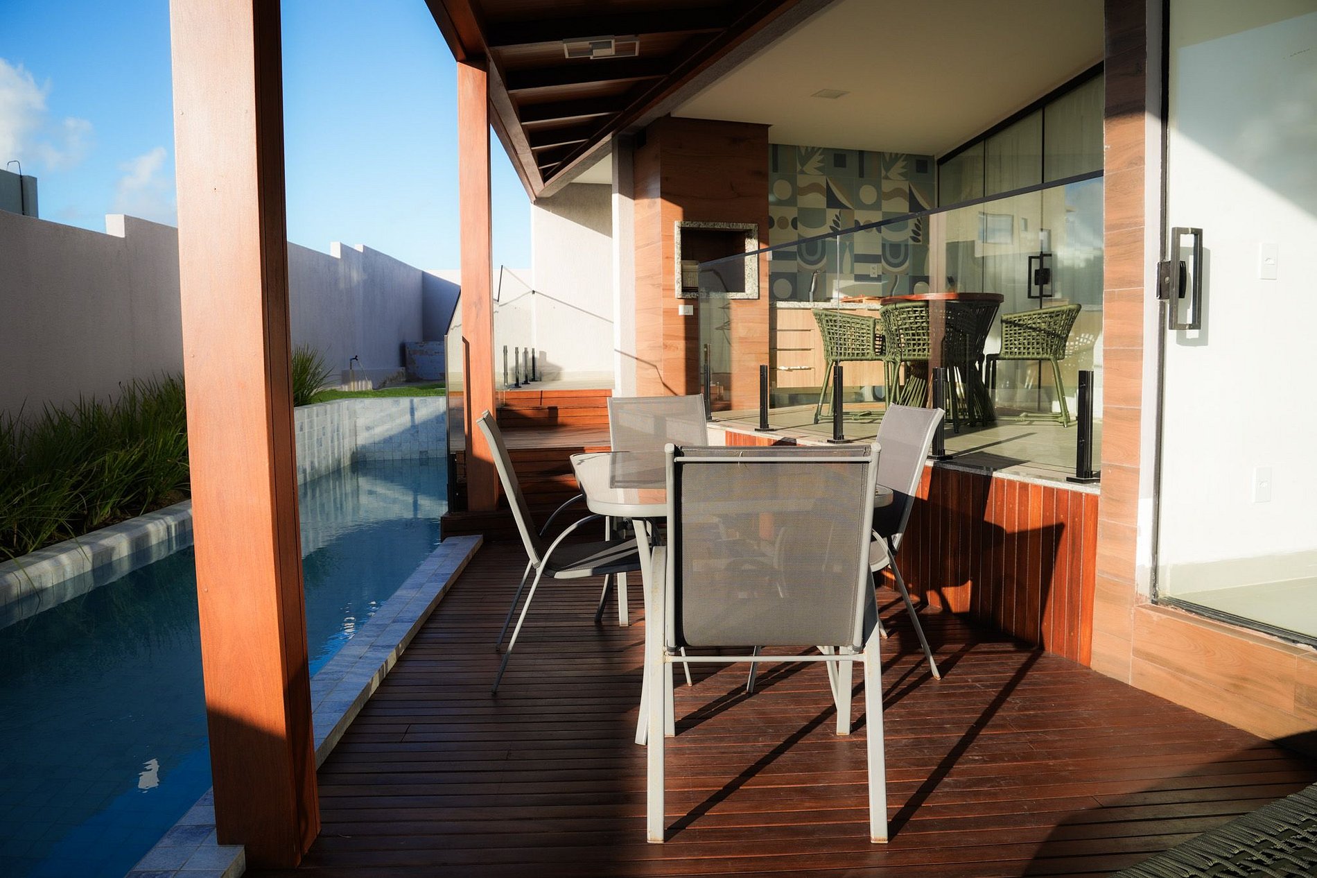 A casa fica em um condomínio fechado beira-mar com acesso direto à praia através do beach club particular do condomínio. O beach club conta com uma piscina de borda infinita à beira-mar.