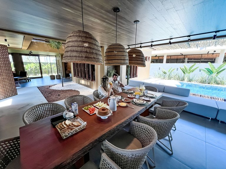 A casa fica no condominio à beira-mar Reserva Porangatu na rota ecológica dos Milagres. Essa casa parece um palácio de praia e está com um preço de lançamento imperdível. São 6 suítes com conforto e os mínimos detalhes pensados pra proporcionar uma experiência imersiva na arte e vida local.