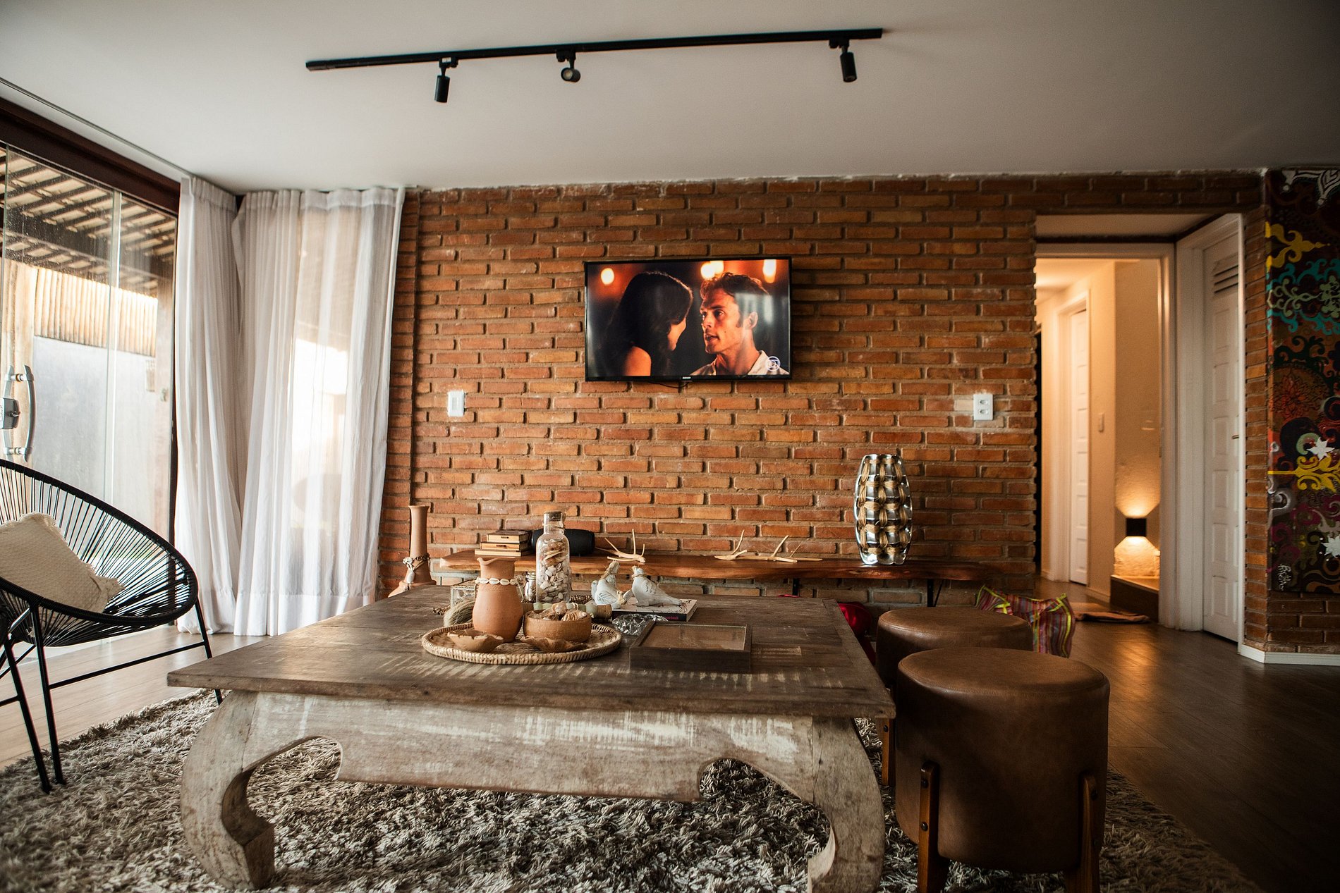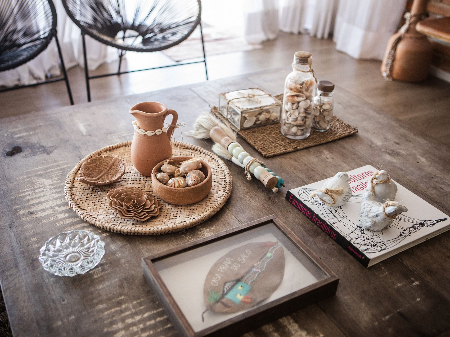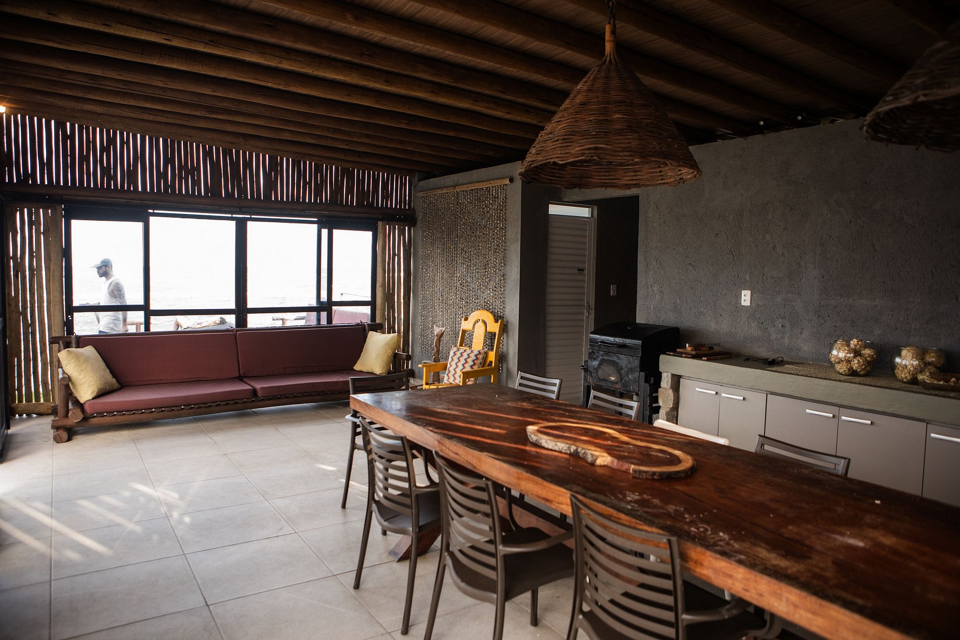 A cozinha totalmente equipada é integrada à sala de estar, oferecendo praticidade e conforto. Cozinhe enquanto desfruta da vista para o mar e se conecta com a área externa, onde há uma mesa de jantar adicional. A sala de estar é espaçosa e sofisticada, com um sofá confortável, poltronas e uma smart TV, criando o ambiente perfeito para relaxar após um dia de praia.