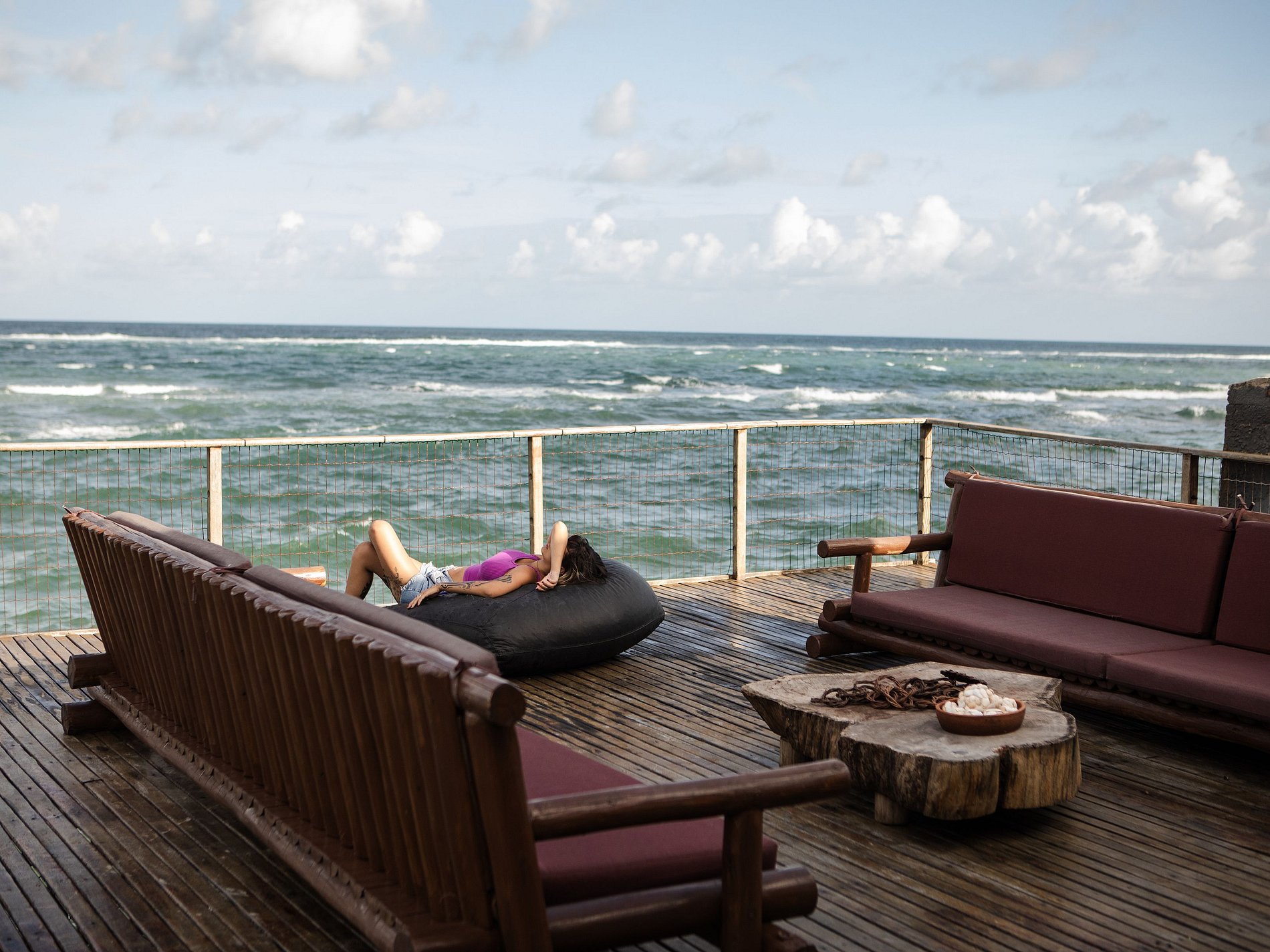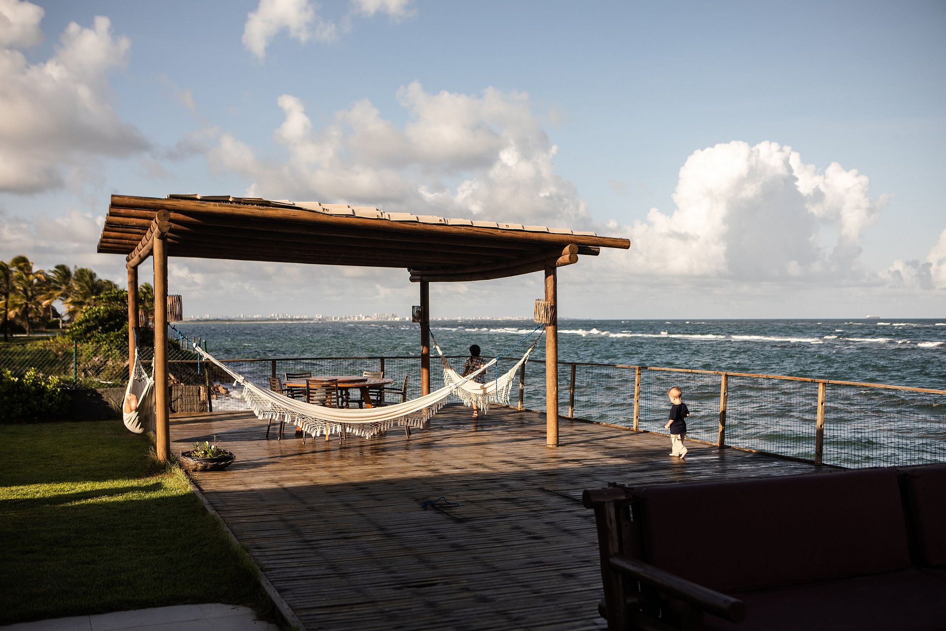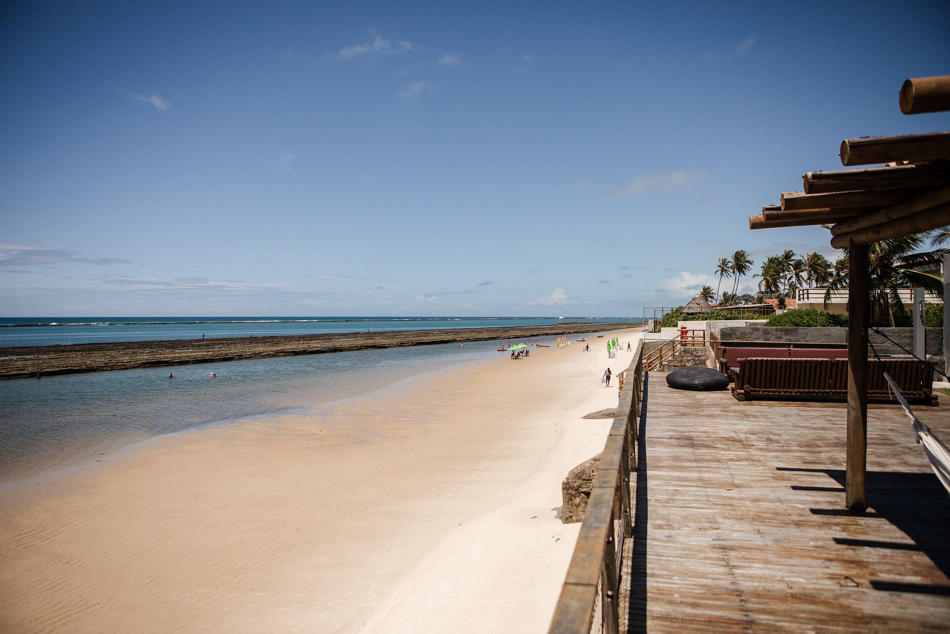 - Deck exclusivo sobre a praia