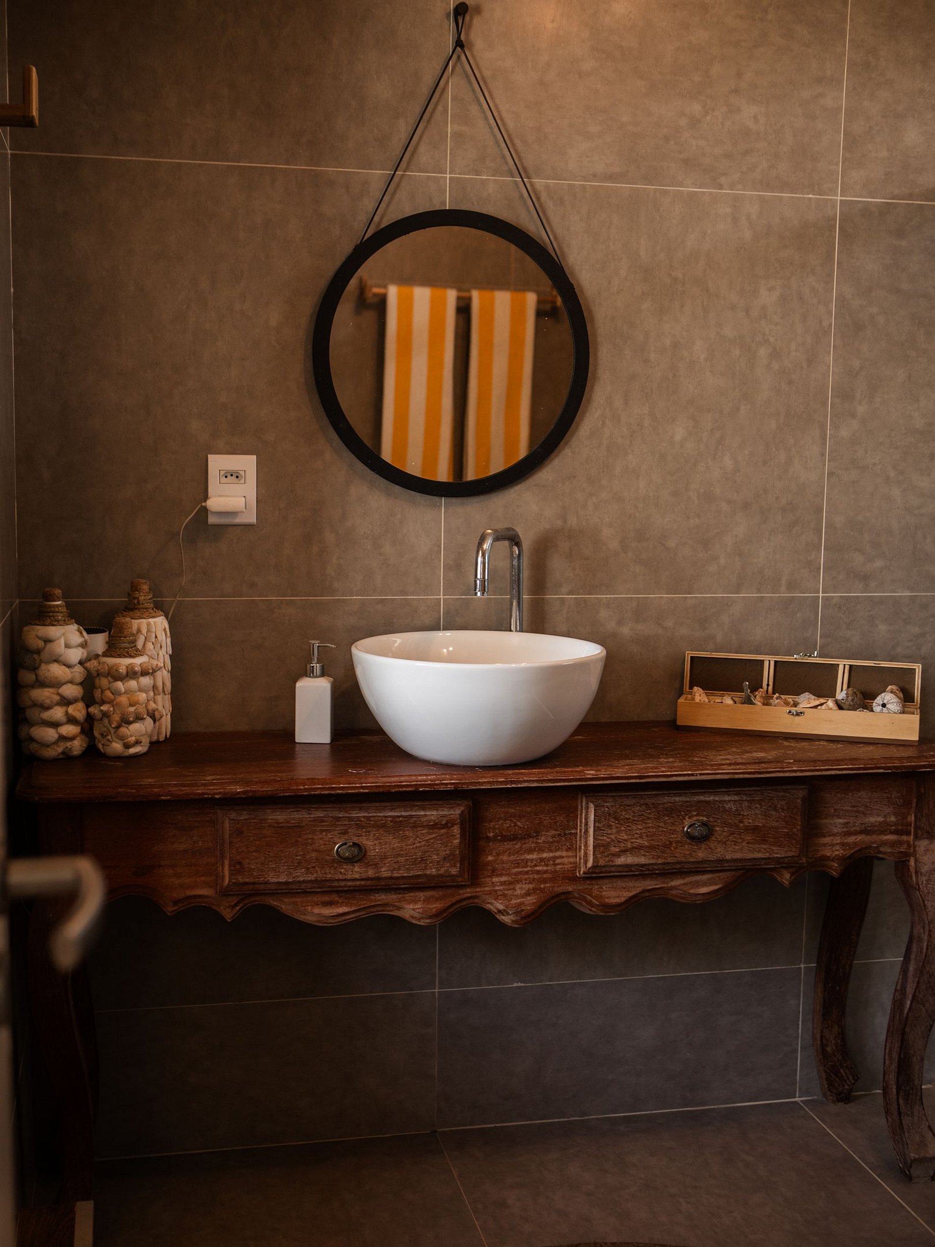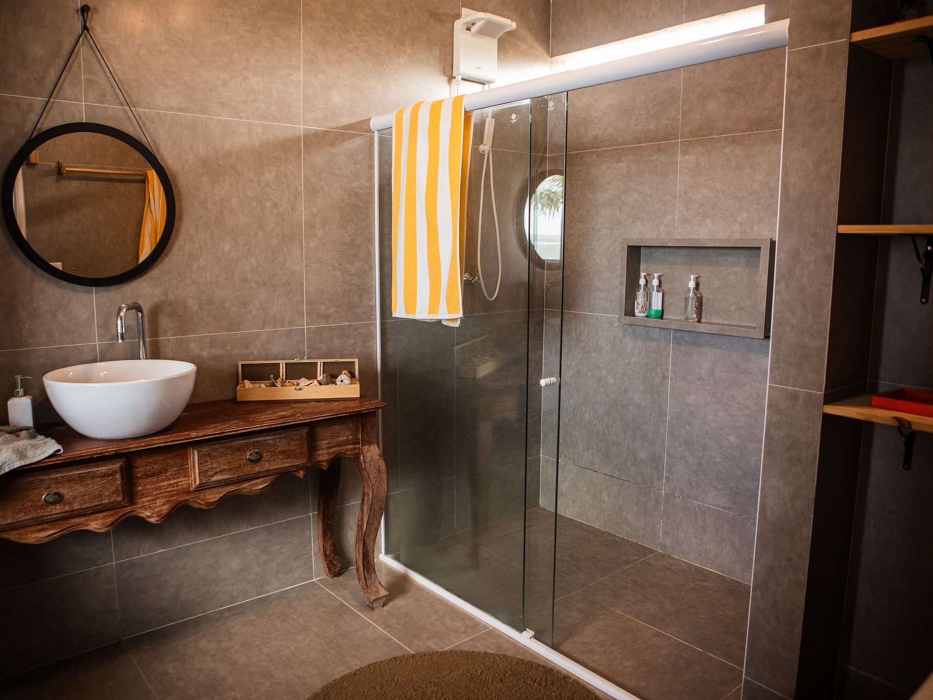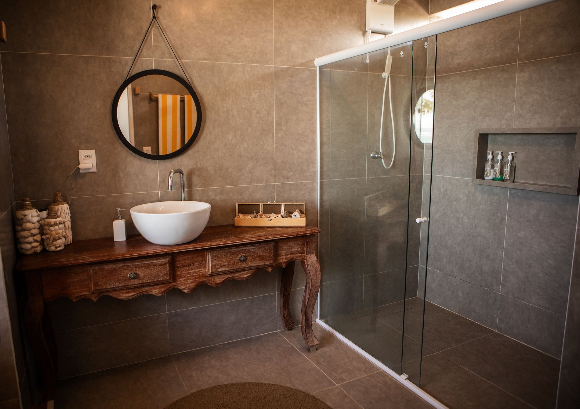 Os banheiros são espaçosos e bem decorados, sendo 3 com chuveiro duplo, proporcionando ainda mais conforto.